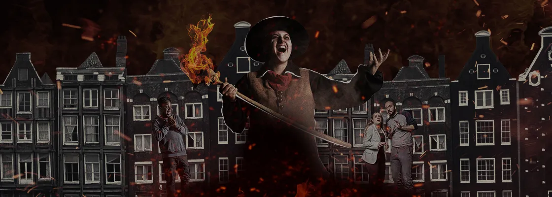 In the middle of the Nieuwmarkt, all eyes are focused on the still empty pyre. Here, the witch hunter is ready to point out his next witch and burn it alive.
